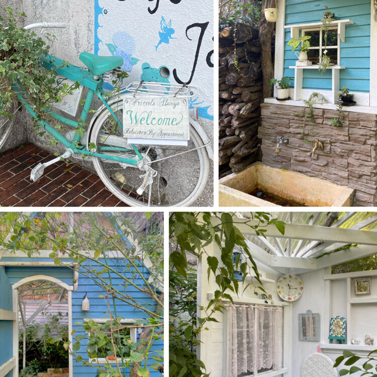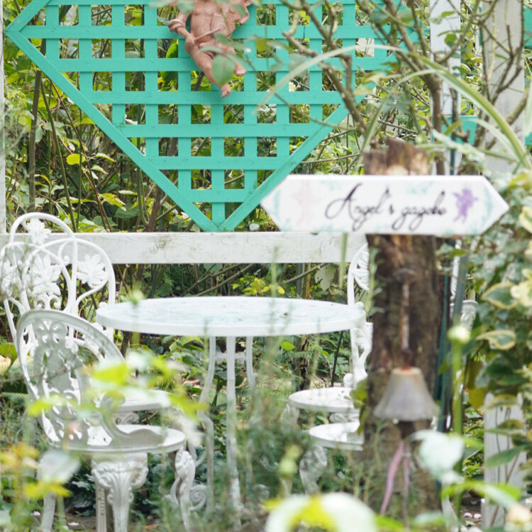 その先には、ヨーロッパ調に設られたテラスや小屋がいくつも出現して😃周りを花や緑で被われて秘密の花園に迷い込んだようでした😊