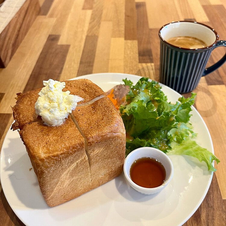 販売されているパンをカフェで食べてもいいのですが、モーニングメニューのサイコロトーストにしました。