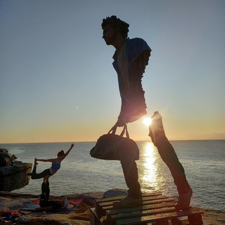 朝陽の写真では、ヨガやってる人たちが後ろに…🧘作品の一部みたいになってます😅