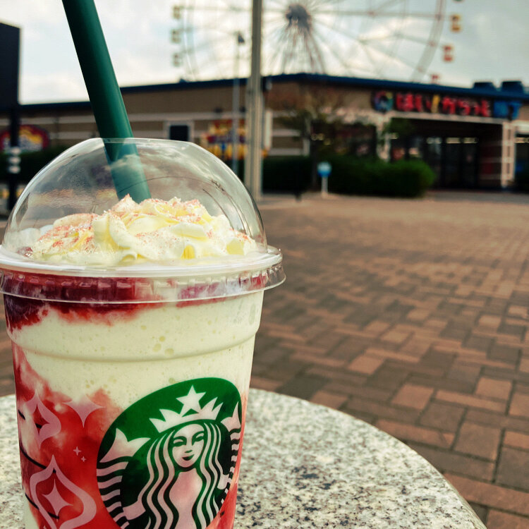 ストロベリー メリークリームフラペチーノを🍓♬.*゚