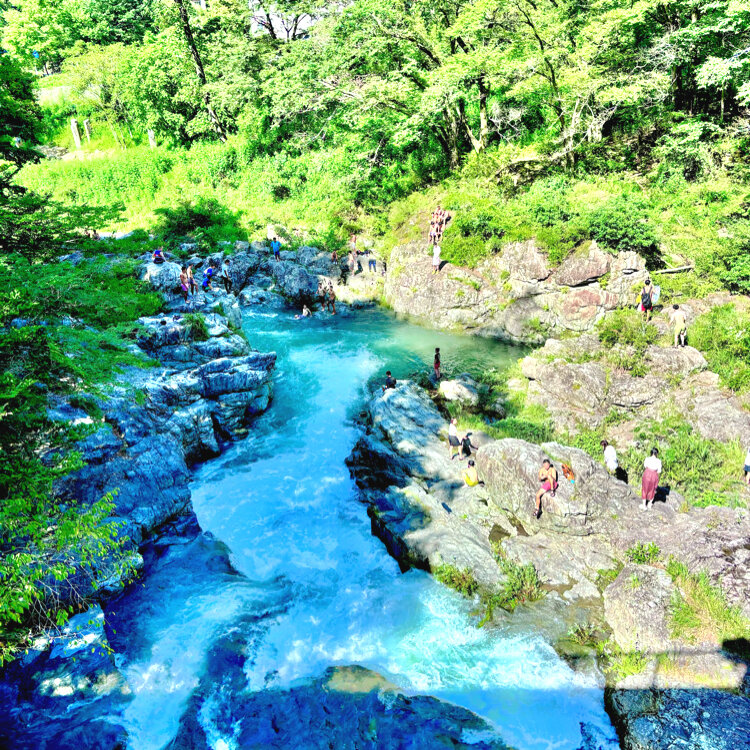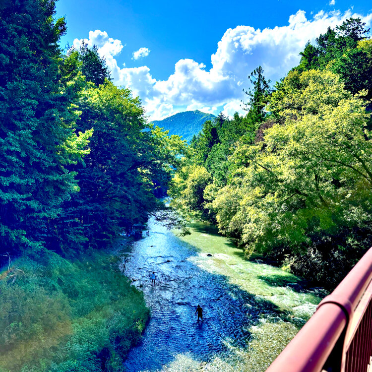 ①石舟橋 瀬音の湯♨️足湯、農産物ショッピングを楽しみ、 キャーキャー歓声が聞こえる方へ散策路を 進んだら《石舟橋》に出ましたよ〜❣️ スニーカー👟がおススメです💥 👙🛟🩳若い子たちが ドボーン💨と飛び込むたびに 歓声が‥ 📍東京都あきる野市 #ことりっぷ旅2024 #透明の世界 #らんらんらん #世界はステキな出逢いにあふれてる #らんらんらんの夏休み2024あきる野 #オトナの遠足 #瀬音の湯 #足湯 #秋川渓谷 #石舟橋 #絶景
