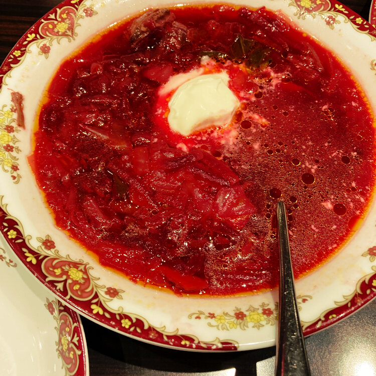 カフェロシア 吉祥寺のロシアンレストランへ 本場の味のボルシチとビーフストロガノフをいただきました♪ 前菜は盛り合わせ5品。 ニシンのパイ料理が有名みたいで みなさん食べてました😋 今度他のメニューも食べてみたいです #秋さんぽ #カフェロシア🇷🇺🪆 #吉祥寺#私のことりっぷ旅