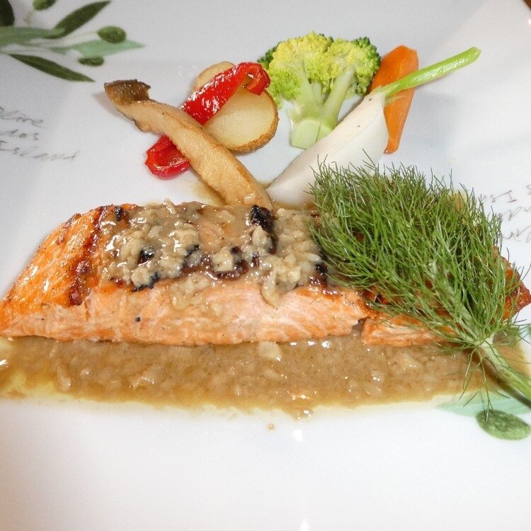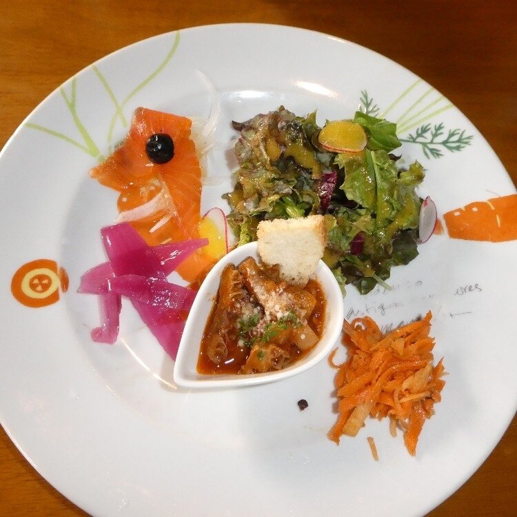 長野県明野にある暖炉レストラン「ターシャ」厨房にある大きな暖炉で調理された料理を提供する。 今回は八ヶ岳サーモンのグリルをいただいた。前菜、スープ、メイン、ライスまたはパン、デザート、ドリンクのランチセット3300円は自分的にはお得だった。