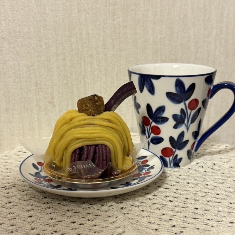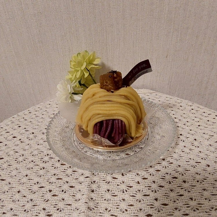 イタリア栗とカシスバタークリームが中にはいっている、お洒落なモンブランです😍