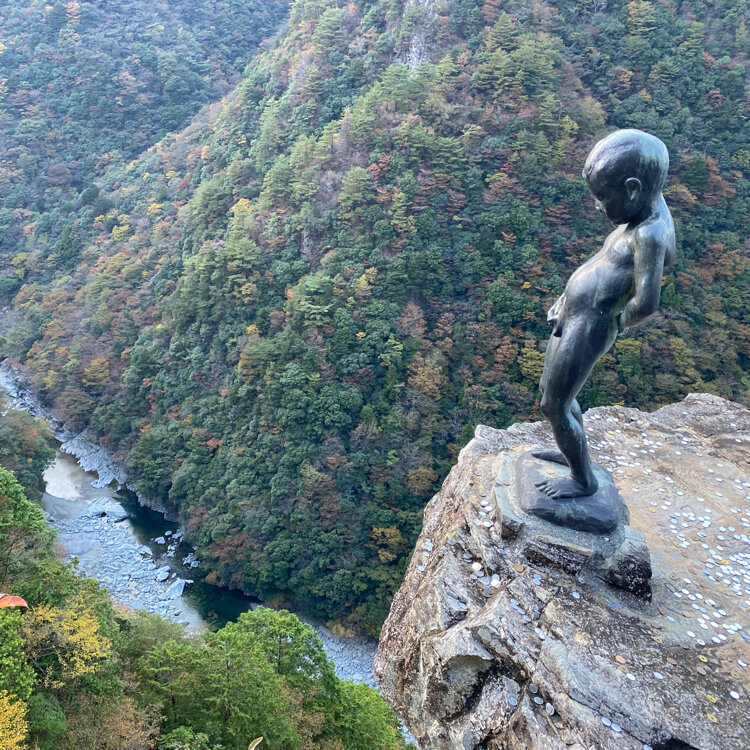 その先更に439号線を進み32号線へ入って行くと更にまた道は細く粗谷渓谷に沿ってひの字渓谷展望台、更に奥に行けば見たかった小便小僧✨✨路駐する場所あるよと言われていたよ