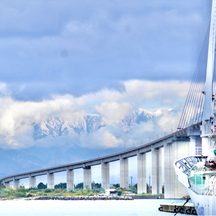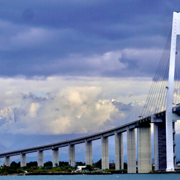 新湊大橋は主橋梁部600mの日本最大の斜張橋。
