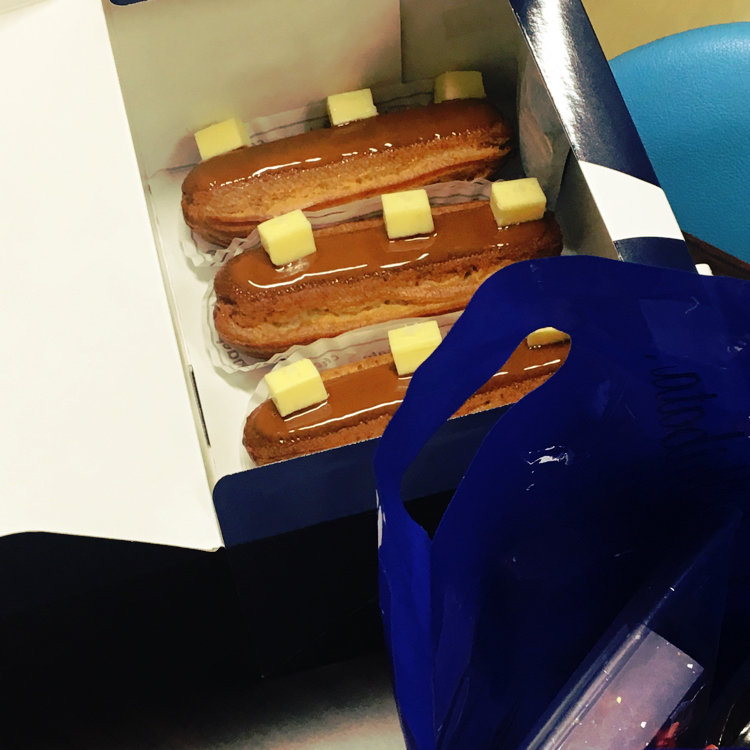 先輩のサプライズ誕生日をおこないました!当日いないとのことなので今日決行。 いろいろみんなで先輩に好きなものとかリサーチしてたけどバレなく、当日とても喜んでくれました! お皿とかが用意してなかったのでエクレアとプレゼントを #手みやげ #誕生日 #サプライズ