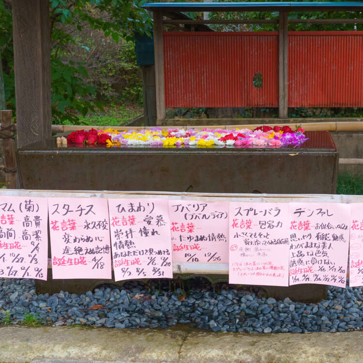 先前神社の花手水はお花の説明付きで、その優しさに感動🌸✨