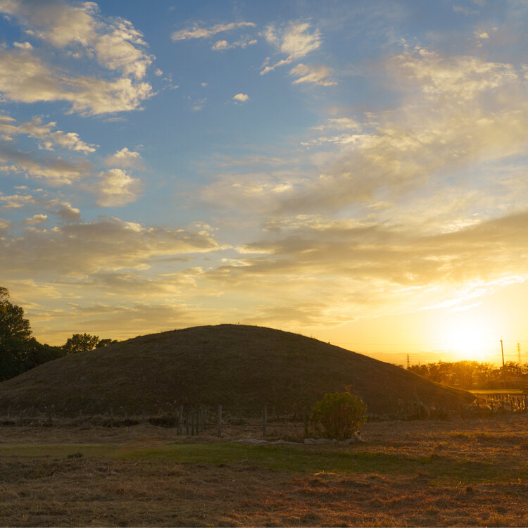 少しずつ日も傾き、古墳越しのとても綺麗な夕日を