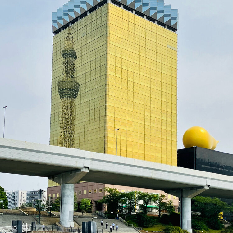 🍺アサヒビール本社ビルの黄金の壁に反射する