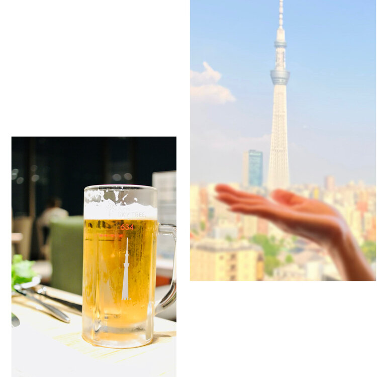 ホテルのレストランで飲んだビールはスカイツリーのジョッキでした〜。