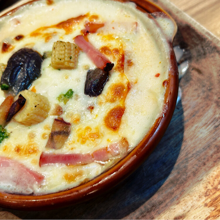 チーズフォンデュとかも美味しそうだったんですが、今回は厚切りベーコンとブロッコリーのトマトソースのボルケーノをチョイス🍅