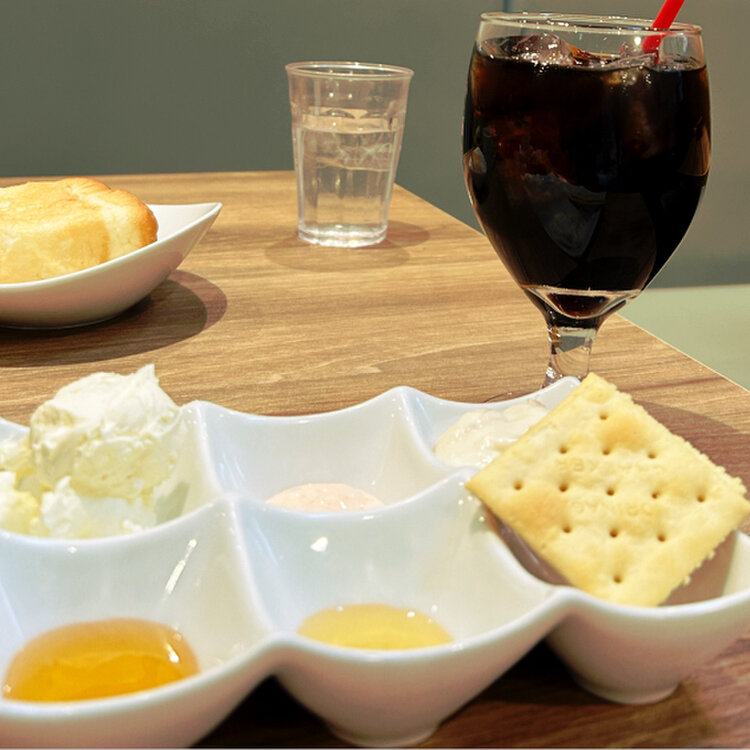 セットのサラダにしょっぱい系チーズをドレッシング代わりにかけてみたり、クラッカーやパンにのっけて食べたりドリンクに砂糖代わりに入れてみたり楽しみ方はいろいろです。