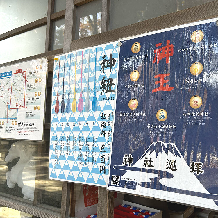 富士山麓の神社7社では、参拝の証として神様の力が宿る「神玉」と、それぞれのご縁を繋ぐ「神紐」をお頒ちしており「7つの神玉」を集められた方には「巡拝達成証明書」を頂けるんだそうです。今回初めてお詣りに行った「小御岳神社」で可愛らしい男の子が「あった!」と嬉しそうに頂いていていたのを見て初めて知りました。そして、初めての神玉と神紐も頂きました。次に小室浅間神社で、そして、新倉富士浅間神社と、有り難く合計3玉を頂いてきました。この写真は小室浅間神社に置かれていたのを写させていただきました。次はいつになるかわかりませんが、その日を楽しみに毎日を頑張ろうと思っています。🗻