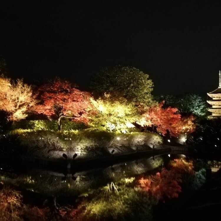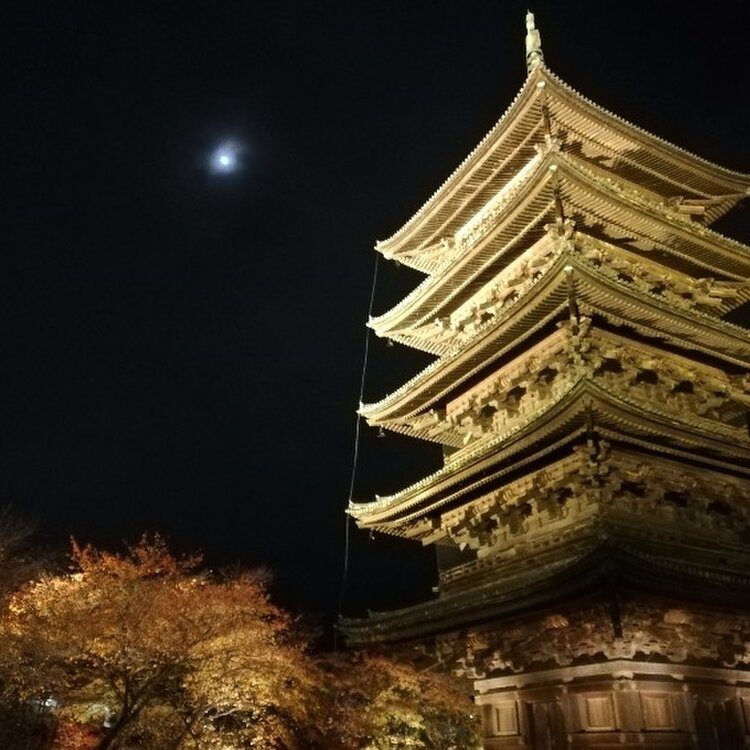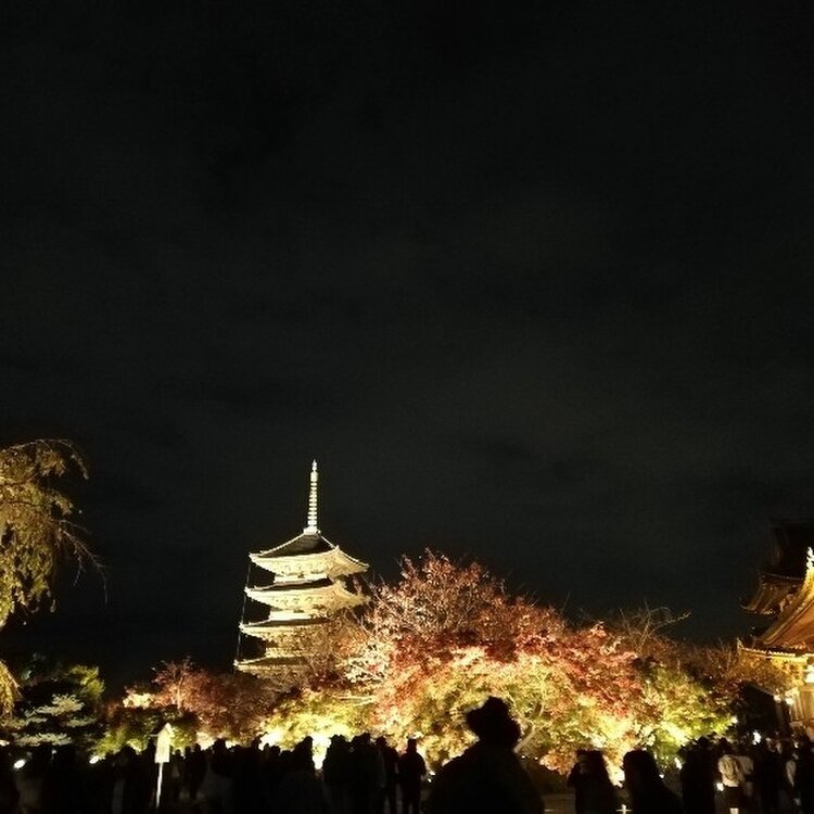 奈良の吉野山で紅葉狩り(おまけ)③。京都を素通りできず、東寺のライトアップに寄り道。映えがハンパない。