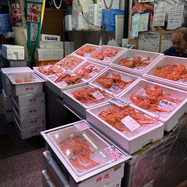 Makiko Omiyaさん♡ こんにちは(*ˊ˘ˋ*)。♪:*° 雑炊の中にまるまるかにさんが🦀 美味しそうですね♬.*゚ 私も先日かにを食べばかりです( * ॑꒳ ॑*) こんな雑炊もいいですね 3枚目はなんでしょう♬.*゚ 高級そうなかに料理ꔛ♡ 市場の活気も伝わってきそうです♬.*゚