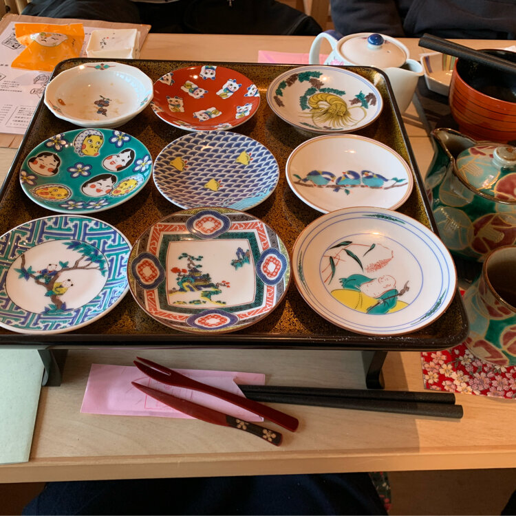 こんにちは☀️ 美しい九谷焼の豆皿✨ お料理も金沢名物が勢揃い とても素敵です🥰 九谷焼の器いいですね✨