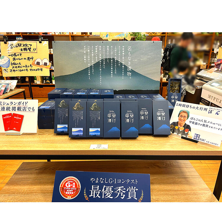 富士山のお土産。近所の友達には、これ💡「甲斐漬け」🍚甲府盆地と富士山を隔てる山間に存在した芦川村。この村に古くから愛される独自製法の漬物。甲斐漬けと命名したご飯のお供🍚情熱大陸にも登場した、知る人ぞ知るお漬物です。炊き立てのご飯にのせて、そしておにぎりの具にと食べるのが楽しみ🍙そして、お菓子、カフェ•ギャラリー「アーヴェント」の「富士山姿抹茶ケーキ」🗻抹茶クリームのコーティング、抹茶クリーム、苦過ぎないちょうどいい抹茶の美味しさが口に広がるケーキ、家族にも大好評でした🌿そして、少しづつ渡すお土産に富士山の形の羊羹、他にはMary's「富士山ミニチュアクランチチョコレート」そして、素敵ユーザーさんが紹介されてた富士山型抜きクッキーetc🗻富士山づくし、パワー貰ったよと喜んで貰えて嬉しかったな❤️富士山駅直結の中のお店「Q-STA」」以前もここで富士山ケーキを買いました。ここには、富士山の素敵、美味しいお土産が揃っていて大好きなお店です🗻