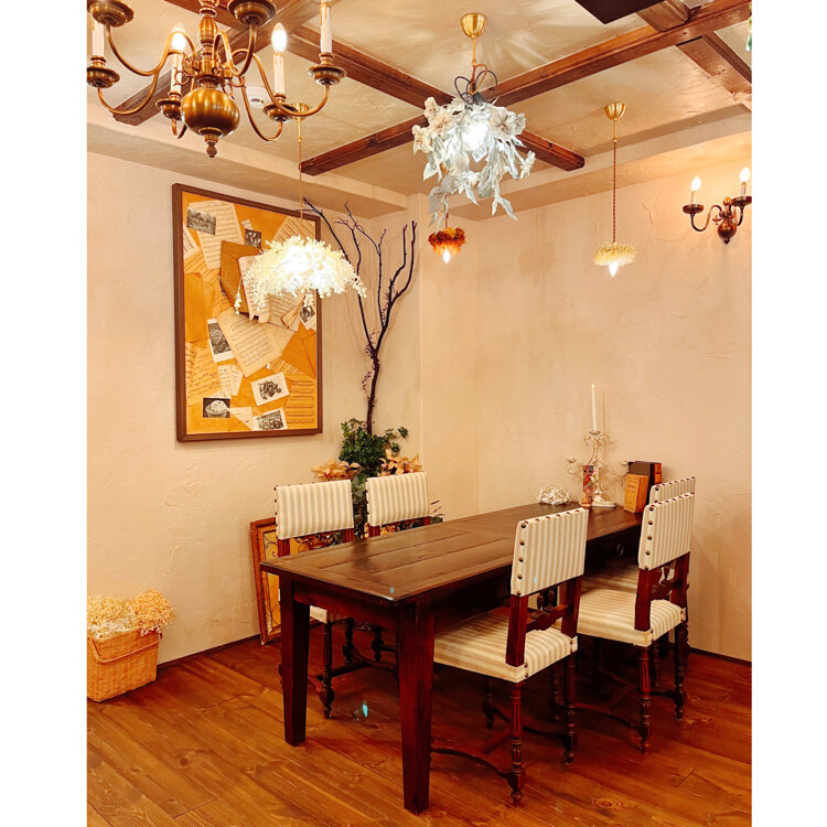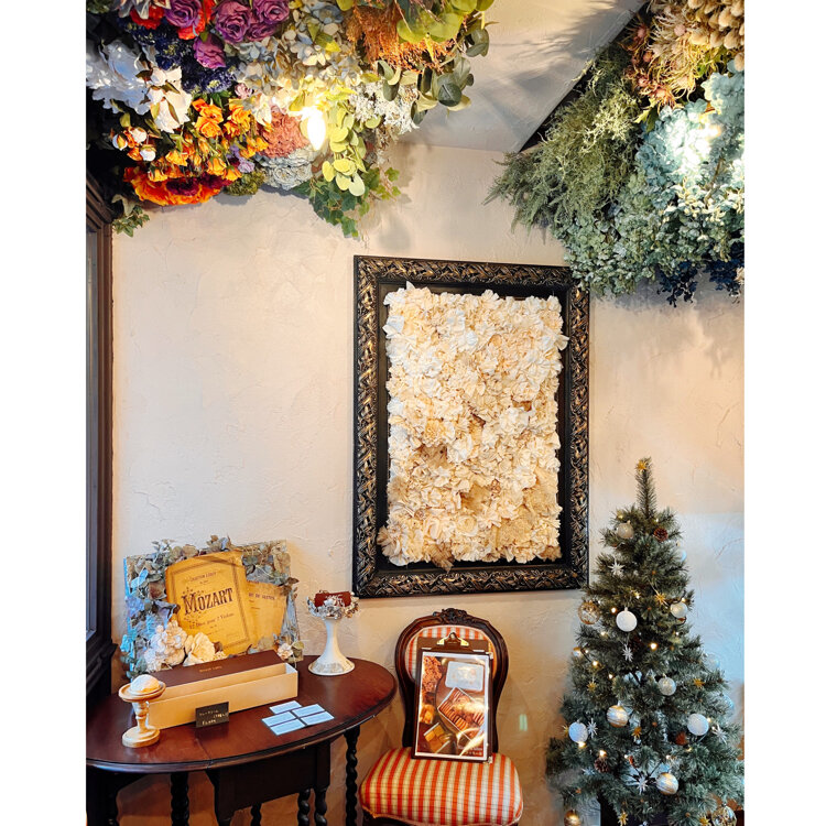 中は天井にはドライフラワーが