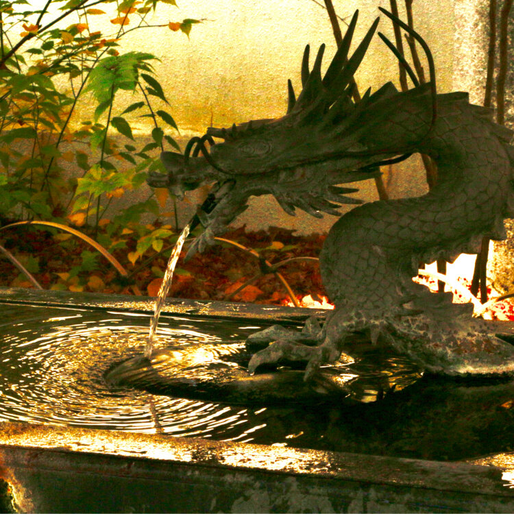 りぴてぃさん♡ こんばんは🌙 残り少ない紅葉も🍁 真っ赤に色づいて最後に燃えるように 綺麗ですね🥰 手水の波紋も美しいです🌀