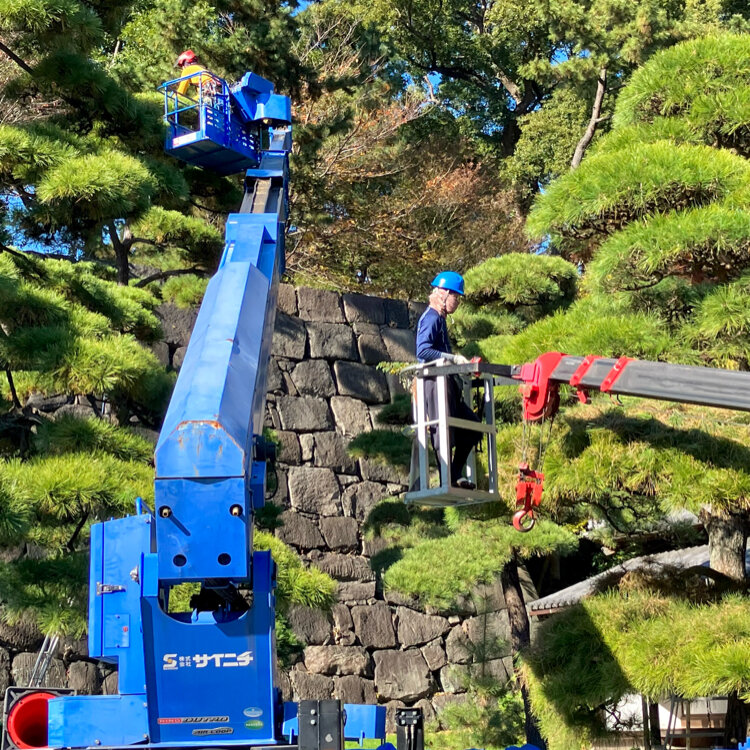 重機を使って松の木の剪定!!