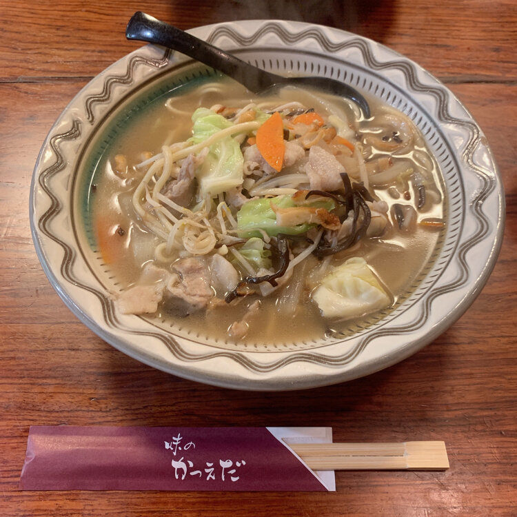 味のかつえだ とんかつ屋さんのちゃんぽん🥢🐉 ここのちゃんぽん好き‼︎もちろんとんかつも‼︎一昨日、長崎でちゃんぽん食べれんかったけん😢福岡で美味しいちゃんぽんを😉 小石原焼きの器も素敵‼︎