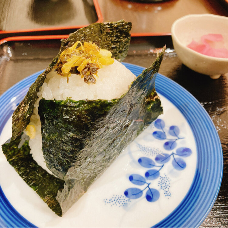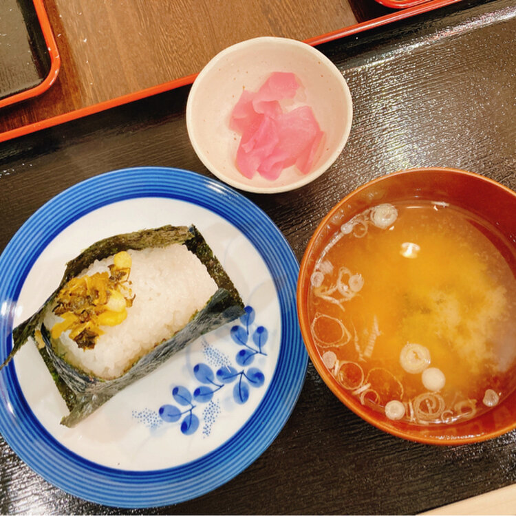 写真は揚げ玉入りの高菜おにぎり、海苔の香りとふんわりと握られたお米がとても合っていました。