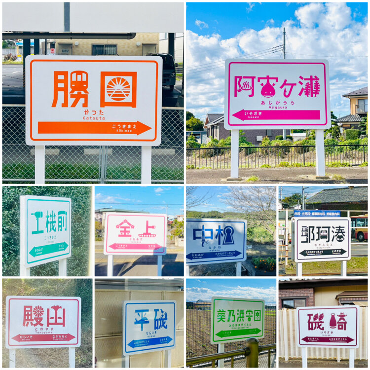 ひたちなか海浜鉄道の各駅名標はとても可愛く、