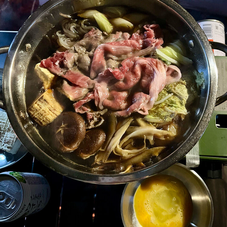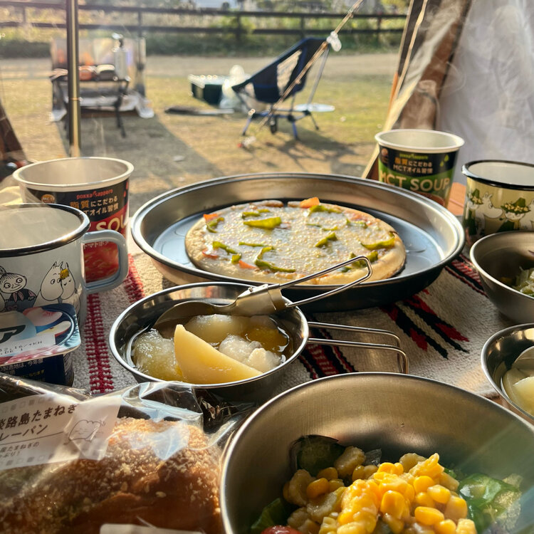 晩ご飯はすき焼きであたたまり、朝ごはんは最近買ったキャンプ用のピザ焼きプレートを使ってピザを温めました😋