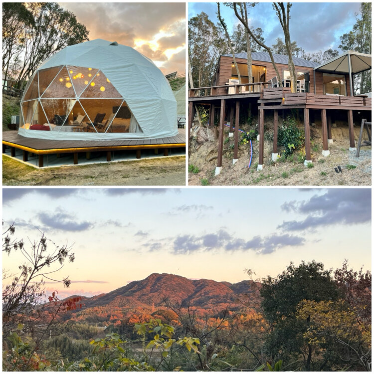 山の中なので木に覆われ、海は見えませんでしたがうっすら夕焼けと赤く染った山々が見えてキレイでした😍