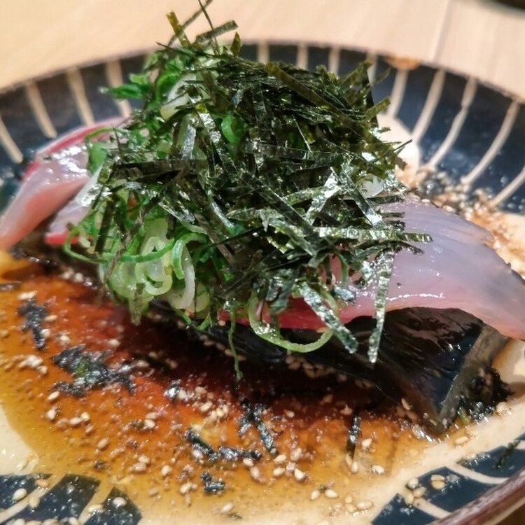 1枚めはカルパッチョ風で、下に茄子が敷かれています。