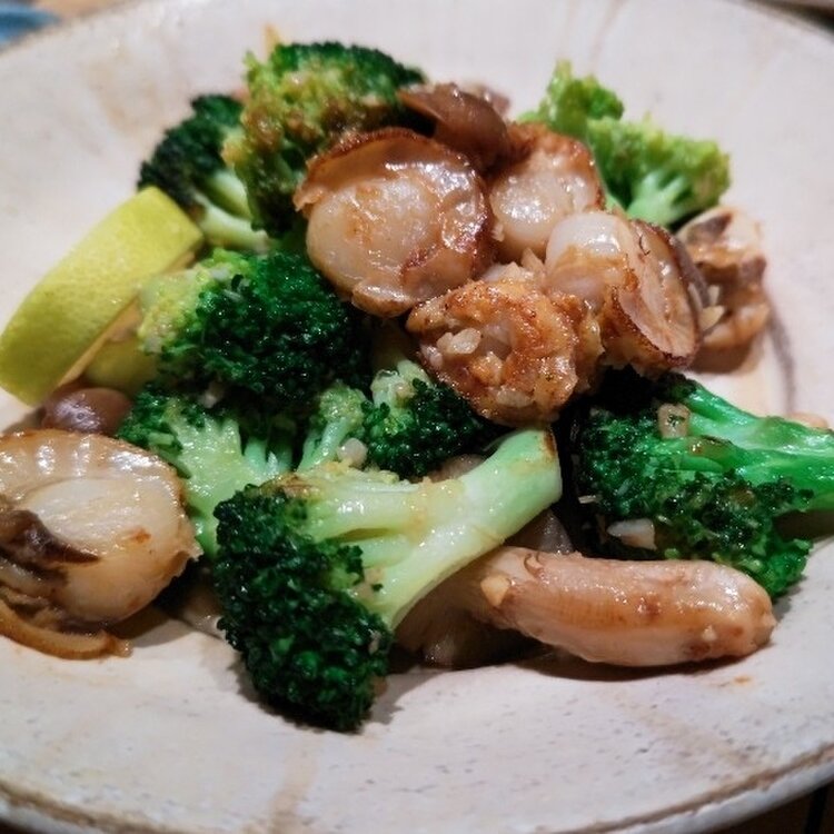 2枚めのホタテとブロッコリーの炒め物はニンニクが程よく効いてて、家で再現したくなりました。