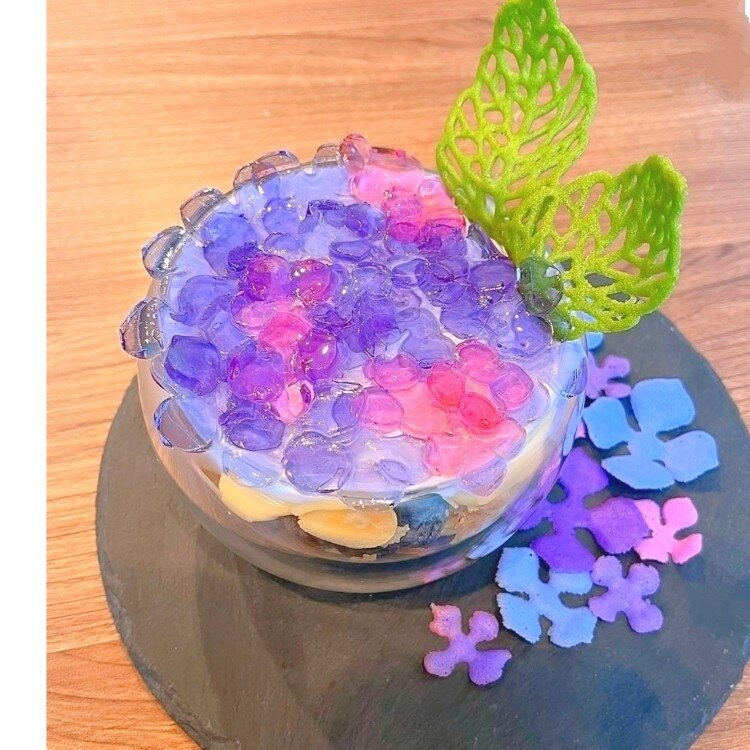 パフェの下のプレートにも、粉糖のアートが可愛かったです。