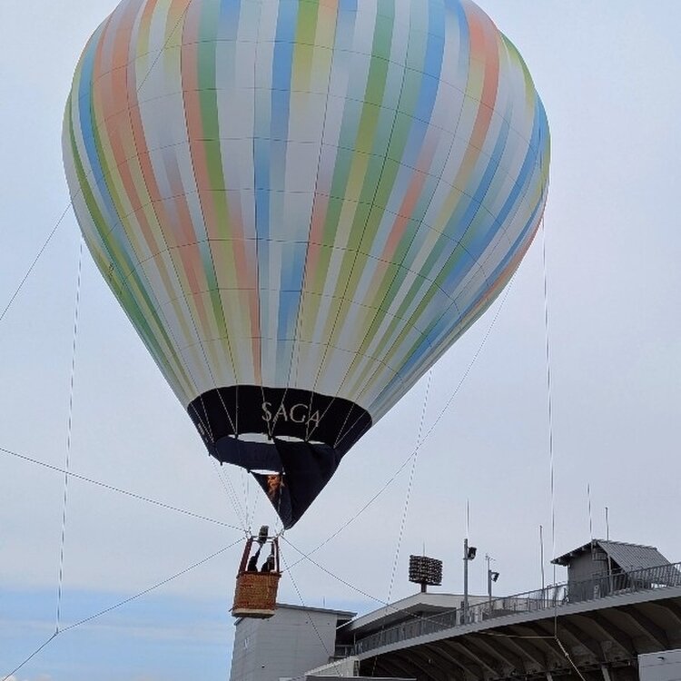佐賀アリーナにバスケの試合を見に行った日、外で綺麗なレインボーカラーのバルーンが係留されていました🎈🌈 #ことりっぷと一緒 #バルーン #熱気球