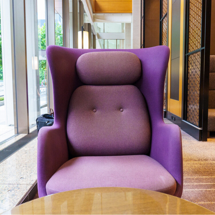 ゆったりとしたパープルのラウンジチェアは座り心地満点💜💯