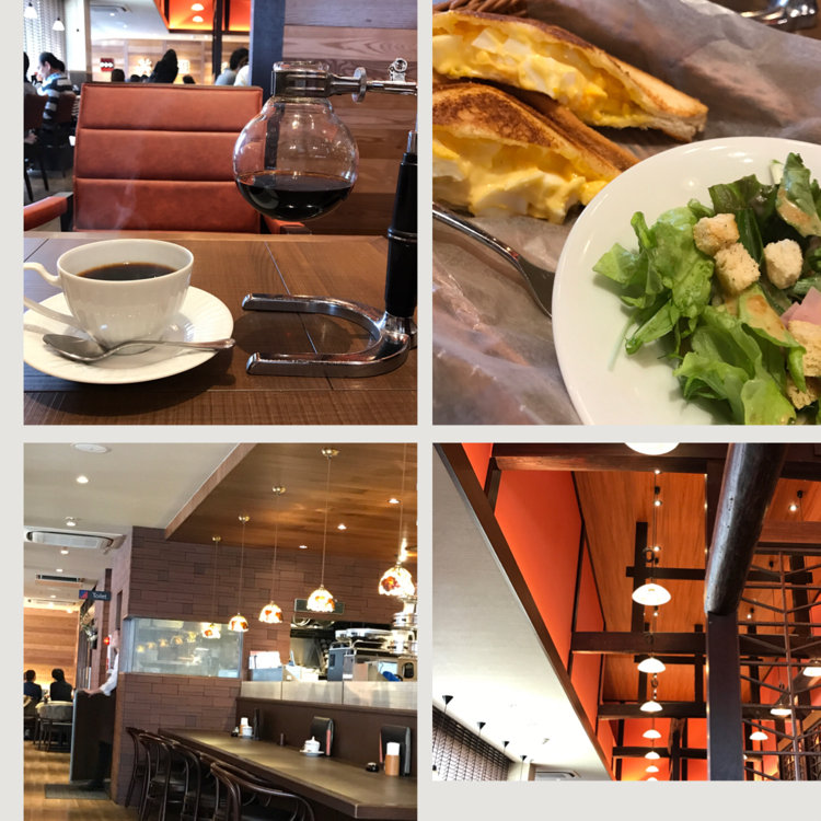倉式珈琲でちょっと休憩 珈琲はサイフォンでそのまま持って来てくれました。 カップに2杯分くらいはあるかな、ちょっとお得な気分。 たまごホットサンドもサクッと美味しくいただきました。