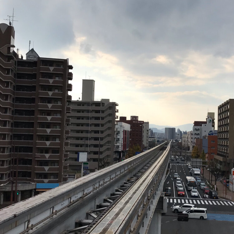 近場に通るモノレール🚝 生憎の曇り空ですが 頻繁に利用しています 周りにはバス路線🚌 JRの路線もあり交通機関が整備されています まだまだ発展してほしいー♬