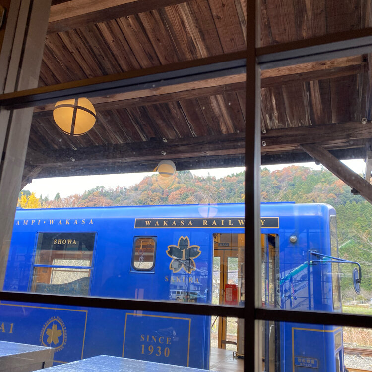 ボスさん♡ こんにちは☁️ ブルーの素敵な列車ですね💙 駅舎カフェもレトロな雰囲気で 素敵ですね😊