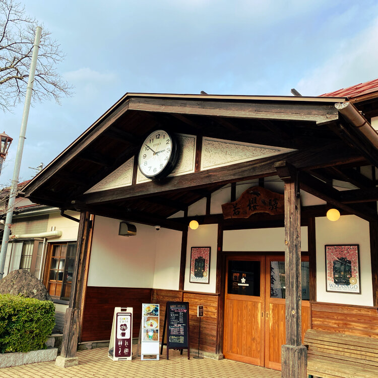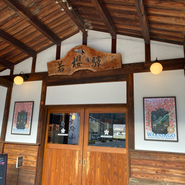 若桜駅 若桜鉄道🚃というローカル線の駅舎にカフェがあり、そこからレトロな電車を見ることが出来ます。 鉄道好きではないですが、旅の途中に寄ってきました。 ローカル線いい感じでした。 電車も可愛かったです♡