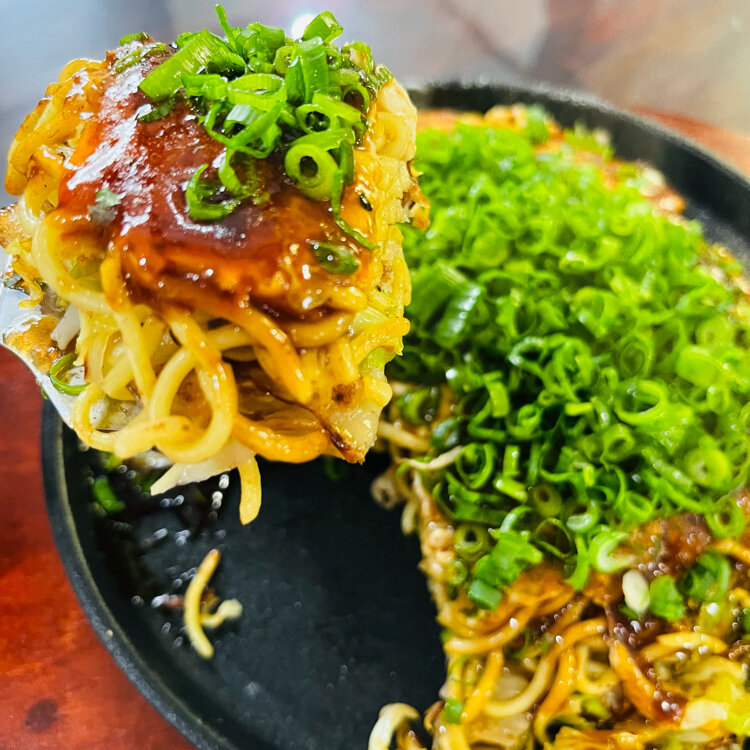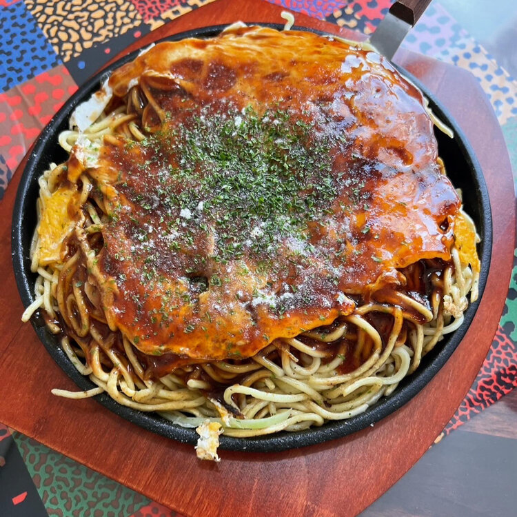 『広島お好み焼き』というと焼きそばのイメージでしたが、うどん人(うどん好き)なので、肉玉大葉チーズのうどんをチョイスしてみましたよ♡