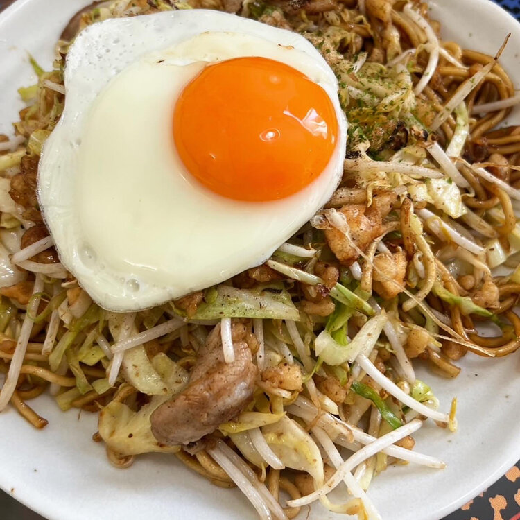キャベツのシャキシャキに、もちもちうどんにソースが絡んでめちゃうま!!