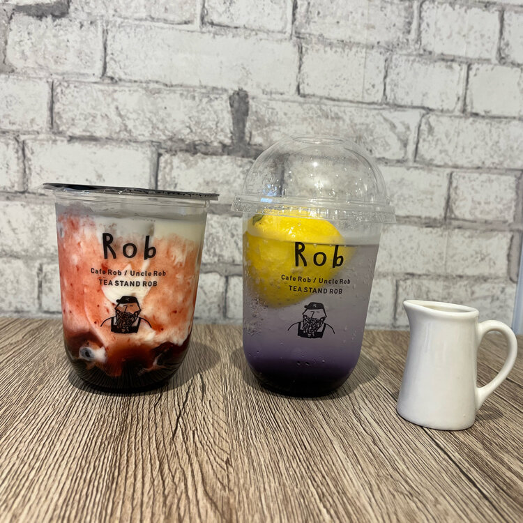 ドリンクはマンゴーには見えない、バタフライピーを使ったもので、別添えでレモンシロップが付いてきました。