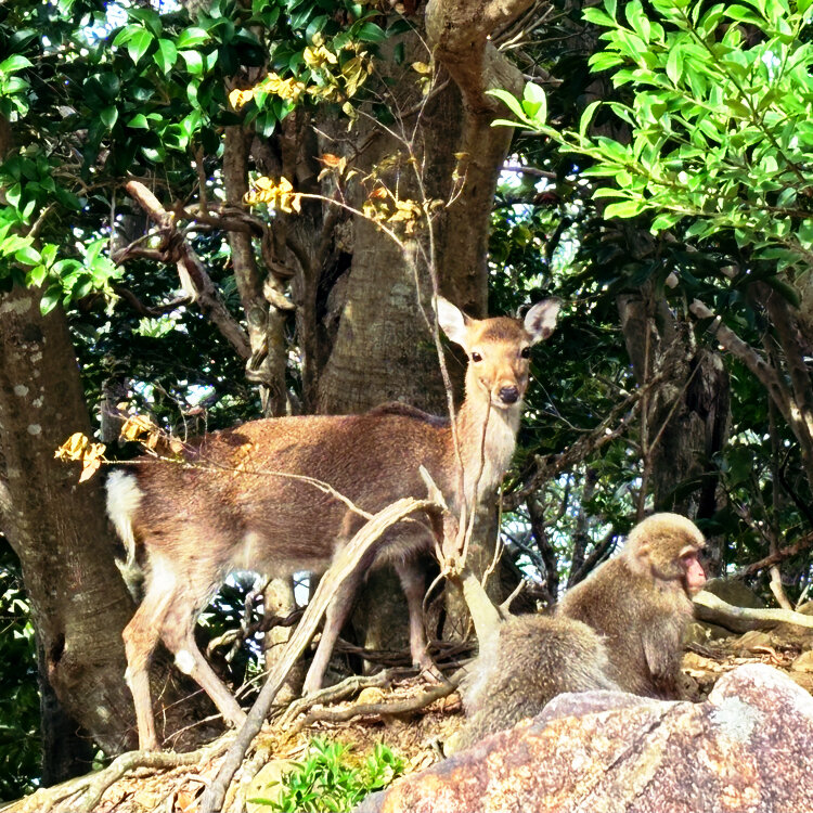 シカの背中にサルが乗っかっている光景も〜♪🤎♫