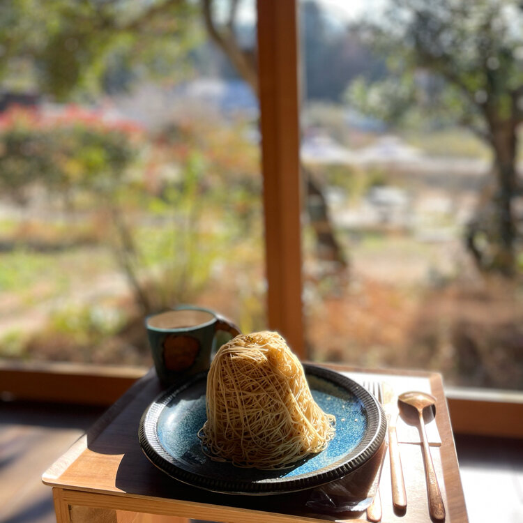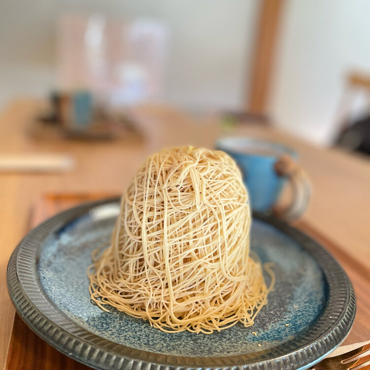 メレンゲと米粉のスポンジと生クリームが層になっていて、絹糸のような栗のクリームが絞りかけられています🌰✨🤤