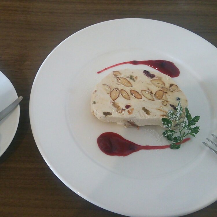 国府津・BABBOで… コースの最後にカッサータとコーヒーをいただきました。 カッサータってアイスのようでアイスじゃない、なんか不思議な食感ですよね。 ナッツがゴロゴロしていて噛みごたえありました(笑)