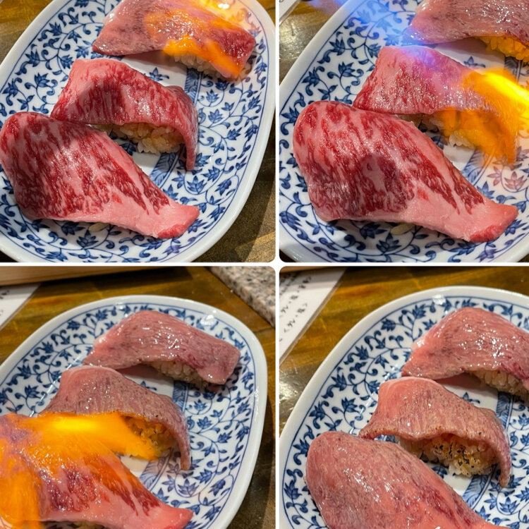 焼肉も美味しかったのですが、和牛炙り大トロ肉寿司が絶品でした。目の前でバーナーで炙ってくれて、8回おかわりしてしました。