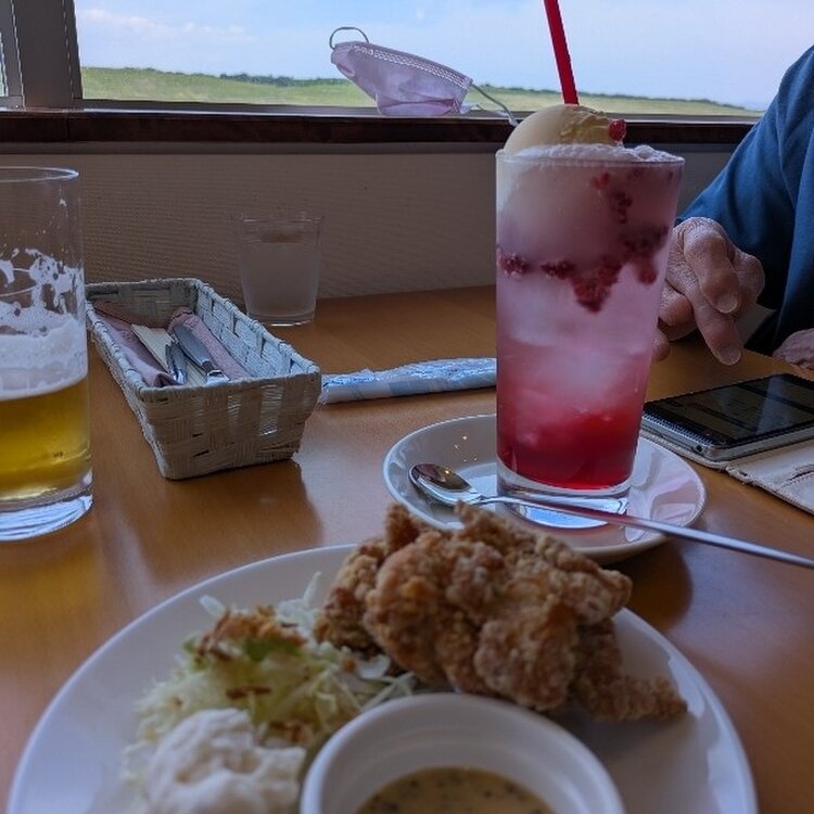 #休日 #空港 メニューが増えてフレンチトーストや可愛らしいいちごフロートなどありました。 ビールはマルエフになっていてあごだしの唐揚げとバッチリ 沖縄フェアもやっていてサーターアンダギーなどゲットしました また福島から沖縄便復活して欲しいなぁ
