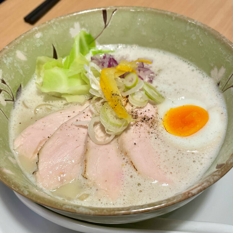 私は、鳥取県大山鶏をふんだんに使い、国産豚骨を合わせた濃厚スープが売りの「鶏白湯ラーメン」を頂きました。