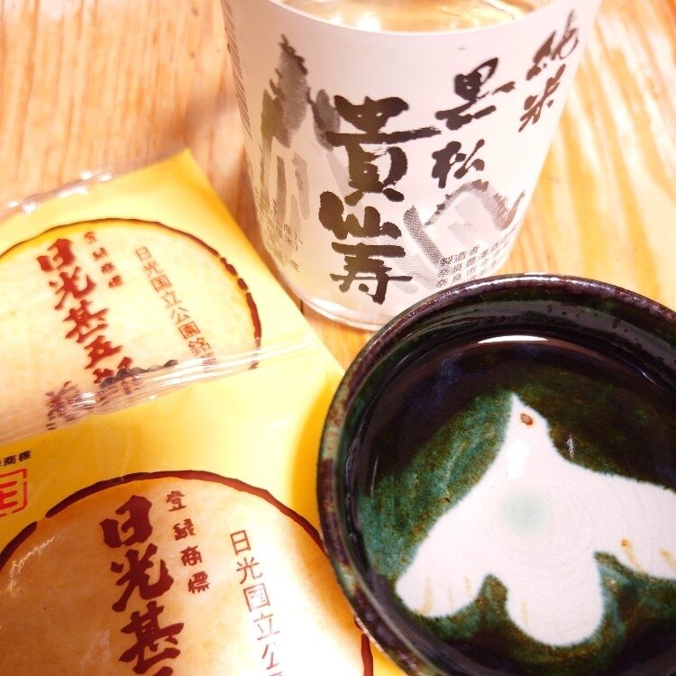 奈良のお土産 純米黒松貴仙寿 おいし🍶 日光甚五郎煎餅と共に🍘 日本酒ってチョコレートとも合うなあ🍫 #奈良 #黒松貴仙寿 #奈良豊澤酒造