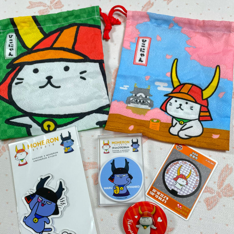 ひこにゃんの巾着袋とバッチは、ガチャガチャです。